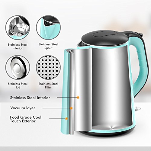 Elechomes 1.7L Electric Kettle, stainless steel kettle with keep warm function. BPA-Free Cool Touch Exterior.