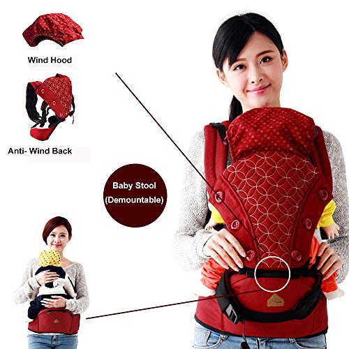 -. Title : Jhua 4 Seasons 6 in 1 Baby Carrier Hip Seat with Hood Backpack Multifunctional Baby Waist Stool Baby Sling Wrap for 3-36 Month Baby Toddler