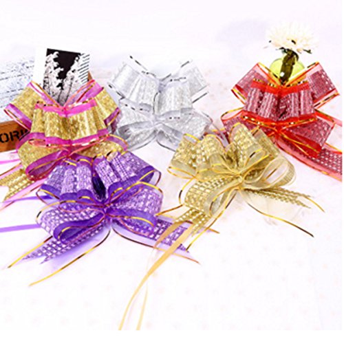 - Purchase includes 20 bows in five different colors (red, golden, purple, silver, and rose red).