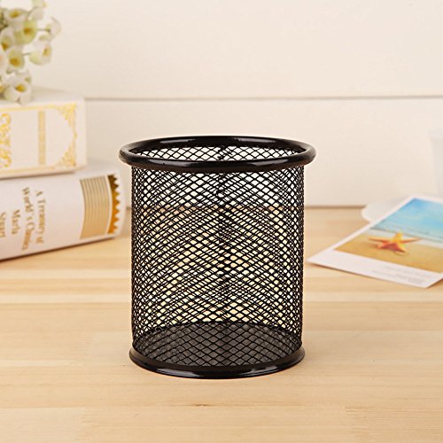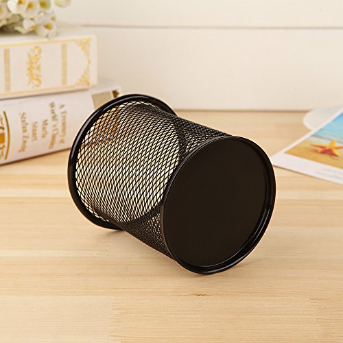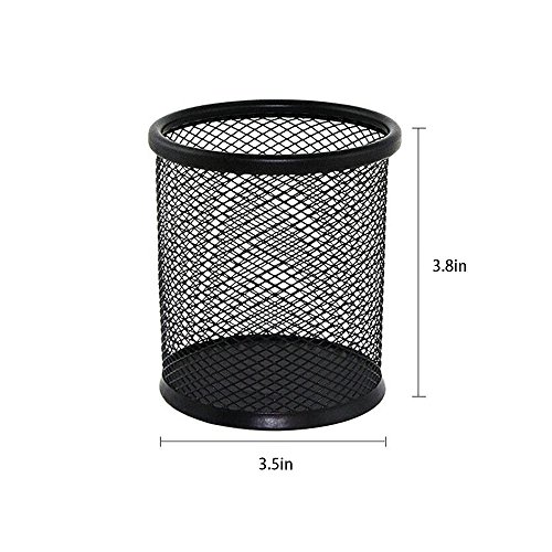 SZmiyang 2pcs Black Round Steel Mesh Pen Container Pencil Cups Desk Organizers Holders 3.5 inch for Home Office