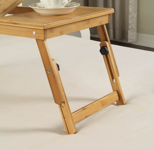 -. Title : 100% Natural Bamboo Wood Adjustable Height Laptop Desk with Foldable Breakfast Serving Bed Tray and Tilting Top