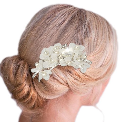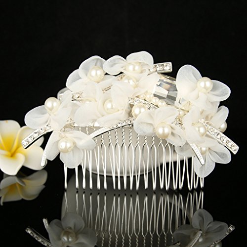 - Title : EleQueen Women's Silver-tone Austrian Crystal Simulated Pearl Handmade Lace Flower Bridal Hair Comb Clear