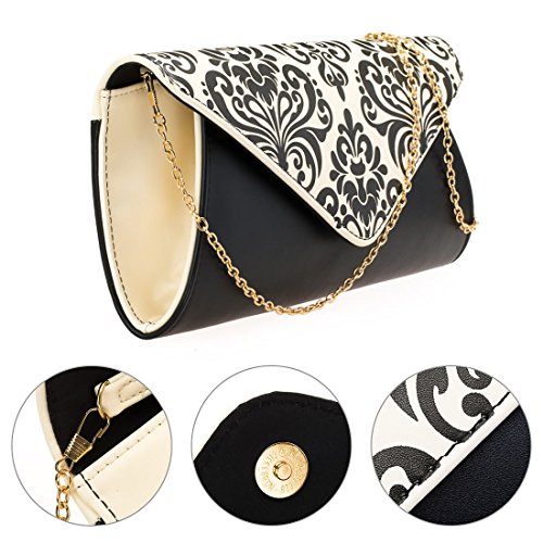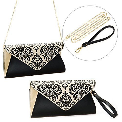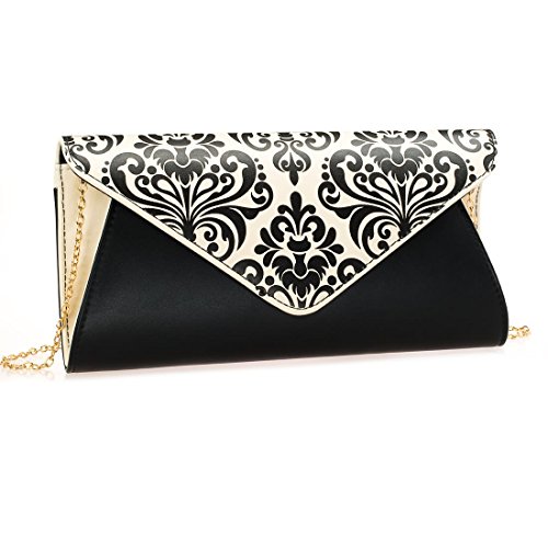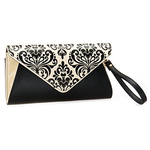 -. Brand : b.m.c -. Department : womens -. Feature : TURN HEADS with this ULTRA STYLISH two tone damask pattern, envelope style clutch / COMPACT, YET SPACIOUS this bag has the following dimensions 11.1 in (L) X 2.3 in (W) X 5.9 in (H). / FLAWLESS INTERIOR - the main compartment features soft lining and includes 1 open side pocket / VERSATILE DESIGN - add the wrist strap (5.6 inches) or shoulder chain which has a 21.5 inch drop / OTHER DETAILS - Material: Faux Leather. Closure: Snap Button. Max Opening: 5.5 inches -. Label : Bundle Monster -. Manufacturer : Bundle Monster -. NumberOfItems : 1 -. ProductGroup : Shoes -. ProductTypeName : HANDBAG -. Publisher : Bundle Monster -. Studio : Bundle Monster -. Title : BMC Womens Faux Leather 2 Tone Damask Style Envelope Flap Fashion Clutch Handbag