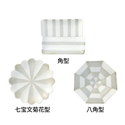 원본상품명: 有田? おてしょ皿3個セット マット グレ?B(七?文菊花型/角型/八角型) 10cm/9.5cm/10cm 北川美宣窯 kgb0321