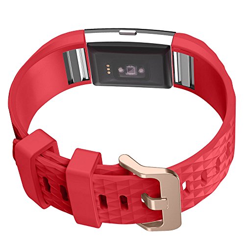 -. Feature : 2 Pack Classic silicone band for Fitbit Charge 2. Alternately personalize your Charge 2 with these refined replacement wristband of high value and quality / This classic band is made of a soft and durable material. When wearing your Fitbit Charge 2 with the band, you will not feel uncomfortable / This band is sweat, rain and splash proof. In addition, with metal buckle clasp, the band can fit your wrist very well and steadily / Easy and fast to assemble or remove the band, no need for tools / This band is suitable for 5.70"-8.26" (145mm-210mm) wrist