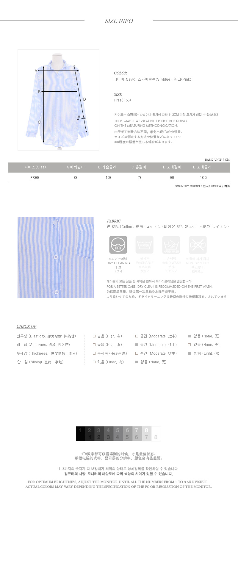 스트라이프 패턴으로 경쾌하고 발랄한 분위기를 느낄 수 있는 셔츠 아이템을 소개해드릴께요~^^ 자칫 밋밋할 수 있는 아이템이지만 경쾌한 스트라이프 패턴이 가미되어 캐쥬얼한 스타일링을 연출할 수 있답니다 적당한 핏과 두께감으로 계절에 구애없이 레이어드룩와 스타일링을 연출할 수 있는 셔츠 아이템이예요~ 심플한 디자인으로 팬츠,스커트 등 다양한 아이템들과 스타일링 연출이 가능한 활용도 높은 셔츠예요~