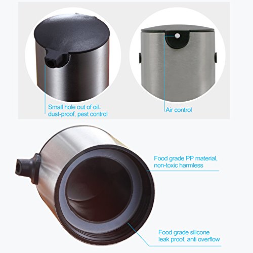 - 304 STAINLESS STEEL-the oil bottle is made of high quality 304 stainless steel will not rust, easy to clean; the more important is to enhance the friction between the hand and oil bottle, prevent falling, but also can protect the bottle body collision and falling prevention.