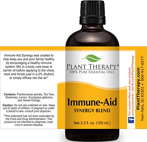 -. Title : Immune-Aid Synergy Essential Oil Blend. 100% Pure, Undiluted, Therapeutic Grade. (Blend of: Frankincense, Tea Tree, Rosemary, Lemon, Eucalyptus and Orange)