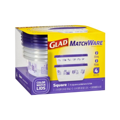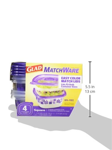 Glad Matchware Food Storage Containers Purple Square Variety Pack, 4 Count (Pack of 4)