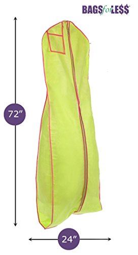 -. Binding : Kitchen -. Brand : Bags For Less -. Color : Lime Green with Hot Pink Trim -. EAN : 0799475249075 -. Feature : 24" wide x 72" long x 10" side gusset / Breathable, soft, clothlike durable material / Reinforced hanger opening, heavy duty center zipper / Hanging clear window pouch / Lime Green with Hot Pink Trim -. IsAutographed : 0 -. Label : Budget Bags -. Manufacturer : Budget Bags -. MPN : 72PRM Lime-Hot Pink Trim-CA -. PartNumber : 72PRM Lime-Hot Pink Trim-CA -. ProductGroup : Home -. ProductTypeName : HOME -. Publisher : Budget Bags -. Size : 24" wide x 72" long x 10" -. Studio : Budget Bags -. Title : Bags for LessTM Breathable Gown Dress Garment Bag Lime Green/Hot Pink Trim -. UPC : 799475249075