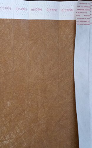 -. Feature : 100 Tan Consecutively Numbered Tyvek wristbands 3/4 inch / waterproof, durable, great one time use / consecutively numbered / Made from Dupont-Tyvek materials / Suitable for crowd control, clubs, amusement parks, and school functions