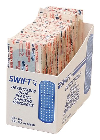 North by Honeywell 015059B Adhesive Bandage, Blue, Plastic, metal detectable, 1-Inch x 3-Inch, 100 per box