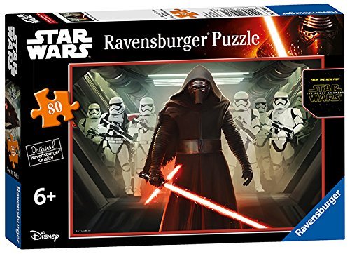 -. Binding : Toy -. Brand : Disney -. EAN : 0022228535997 -. Feature : 80 piece jigsaw puzzle / Features colourful and detailed artwork from Star Wars Episode 7, The Force Awakens / Finished puzzle measures 36 x 26cm / Ideal for any Star Wars fan aged 6 and up / Made from high-quality card, and cut using Ravensburger's exclusive Premium Puzzle SoftClick Technology -. IsAdultProduct : 0 -. Label : Disney -. Manufacturer : Disney -. MPN : H2JT91H -. PartNumber : H2JT91H -. ProductGroup : Toy -. ProductTypeName : TOYS_AND_GAMES -. Publisher : Disney -. Studio : Disney -. Title : Star Wars Puzzle 80 Pieces Ages 6+ Kylo Ren with Stormtroopers The Force Awakens -. UPC : 022228535997