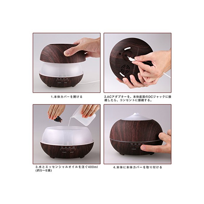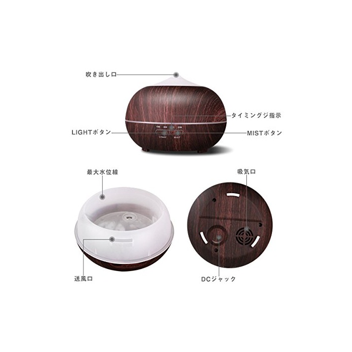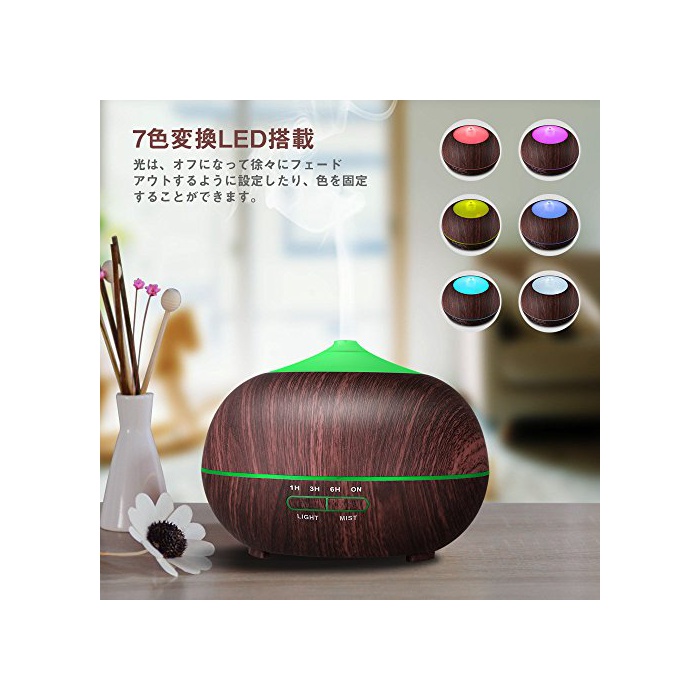 원본상품명: Tenswall 超音波式 400ml アロマディフュザ 加器 7色LEDライト換 木目調