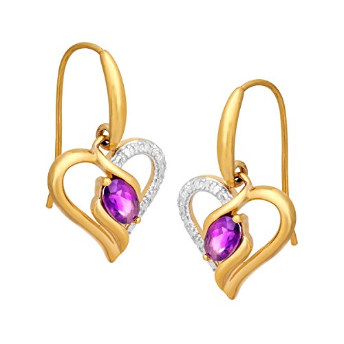 -. Title : 3/4 ct Natural Amethyst Heart Drop Earrings in 18K Gold over Brass