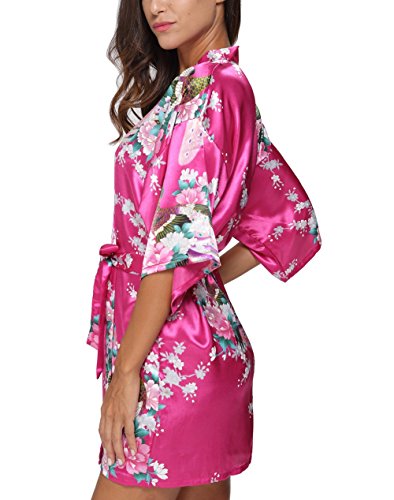 Original Kimono Women's Short Kimono Robe Bathrobe with Peacock Patterns Rose L