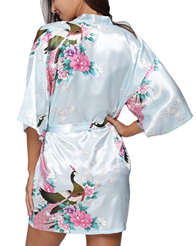 Original Kimono Women's Short Kimono Robe Bathrobe with Peacock Patterns Light Blue M