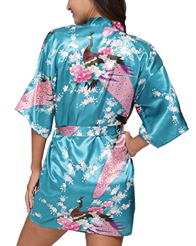 Original Kimono Women's Short Kimono Robe Bathrobe with Peacock Patterns Green S