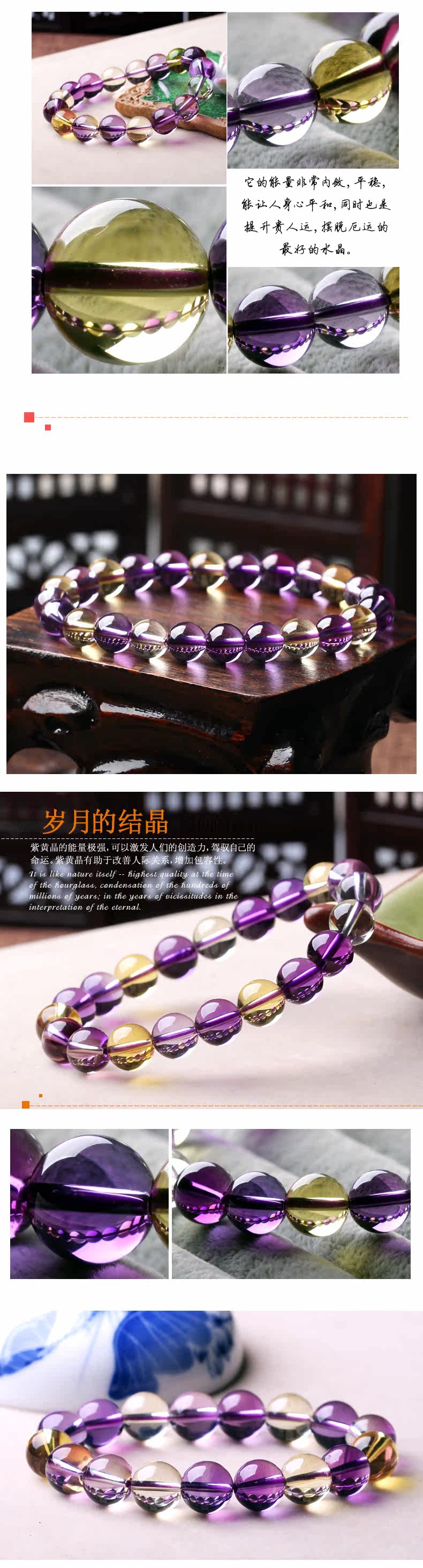 白黄紫优化水晶手链 男女款 手串佛珠白水晶饰品茶水晶