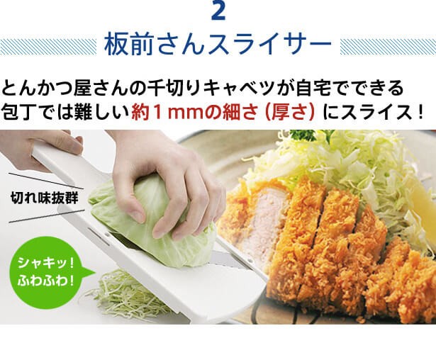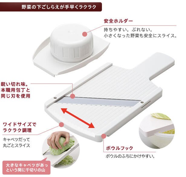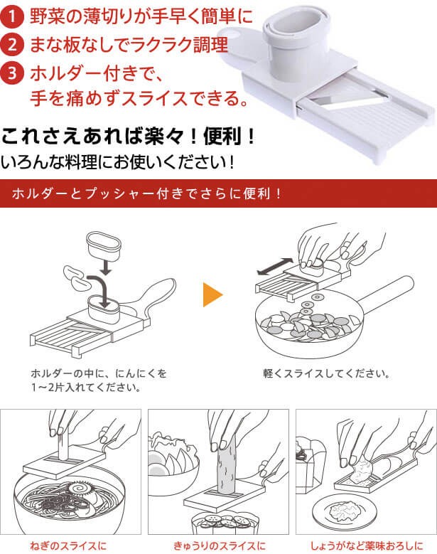 | セット内容 | ■板前さん両面おろし受け皿付き ■板前さんスライサー・安全ホルダー ■ミニスライサー・ホルダー・プッシャー |