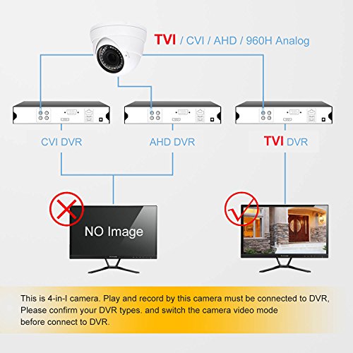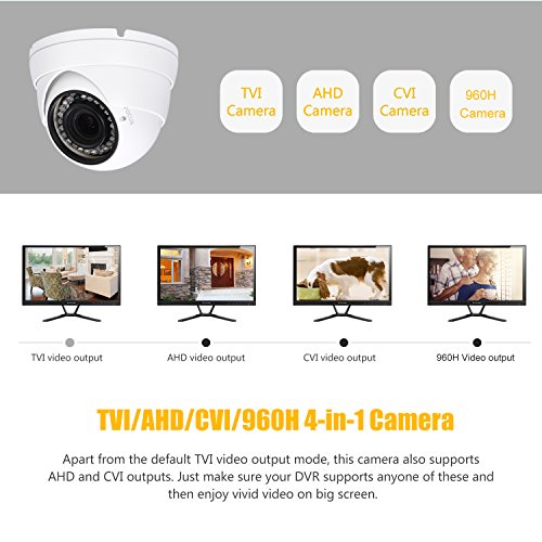 Analog CCTV Camera HD 1080P 4-in-1 (TVI/AHD/CVI/CVBS) Security Dome Camera, 2.8mm-12mm Varifocal Lens, True Day & Night Monitoring IP66 (White)