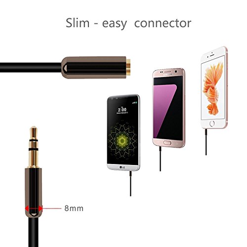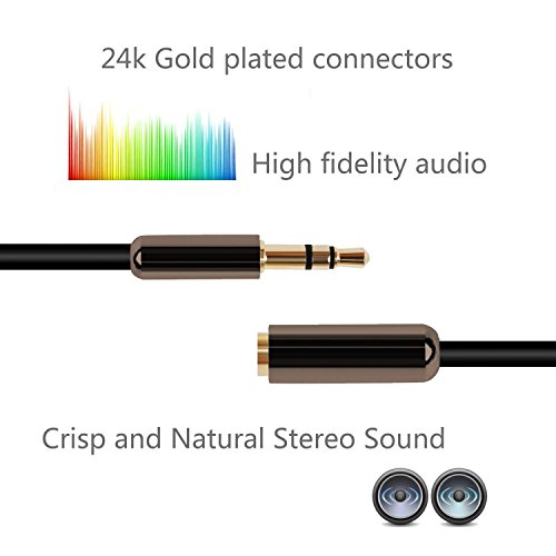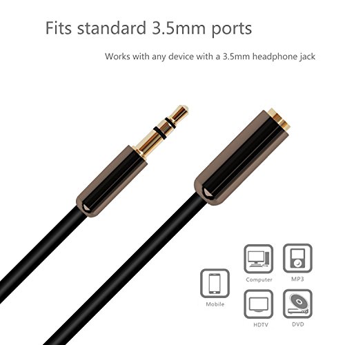 DIKOO Universal 3.5mm Male to Female Extension Stereo Audio Cable Gold-Plated Plug for iPad iPhone 6s 6 Plus,Samsung,HTC,LG Smartphones,Laptops,MP3,Tablets(3ft,Black)