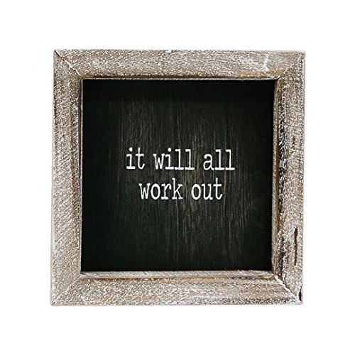 It Will All Work Out Black White 5 x 5 Inch Wood Framed Hanging Wall Plaque