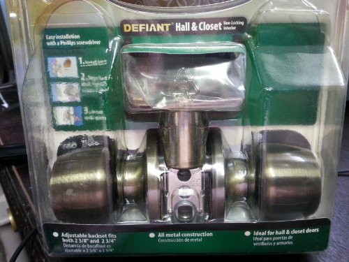 -. Color : Antique Brass/Brass -. EAN : 0050134883017 -. Feature : ANTIQUE BRASS FINISH / EASY INSTALLATION / FITS MOST STANDARD DOORS / FOR USE WHERE LOCKED ENTRY IS NOT NECESSARY / ROUND CORNER OR DRIVE-IN LATCH OPTIONS FITS EVERY DOOR / ALL METAL CONSTRUCTION -. Label : Defiant -. Manufacturer : Defiant -. Model : 332-259 -. MPN : 332-259 -. PackageQuantity : 1 -. PartNumber : 332-259 -. ProductGroup : Home Improvement -. ProductTypeName : HARDWARE -. Publisher : Defiant -. Studio : Defiant -. Title : Defiant Hall and Closet Non-locking Interior Door Knobs -. UPC : 050134883017