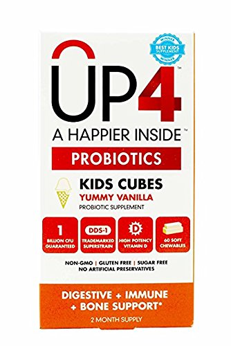 Up4 a Yummy, Chewable Cube? Makes supporting kids' digestive and immune health easy and fun (you'll love them, too). 1 billion CFU. High potency Vitamin D. 60 Chewables. Non-GMO. Sugar Free. Gluten Free. Soy Free. Preservative Free. Not All Probiotic Strains Are Created Equal. Exceptionally resilient, scientifically validated superstrains like Lactobacillus acidophilus DDS-1 are the base for our formulas. Our selected live cultures are proven to naturally withstand stomach acid and bile without the need for chemical coatings. This statement has not been evaluated by the Food and Drug Administration. This product is not intended to diagnose, treat, cure or prevent any disease.Feature