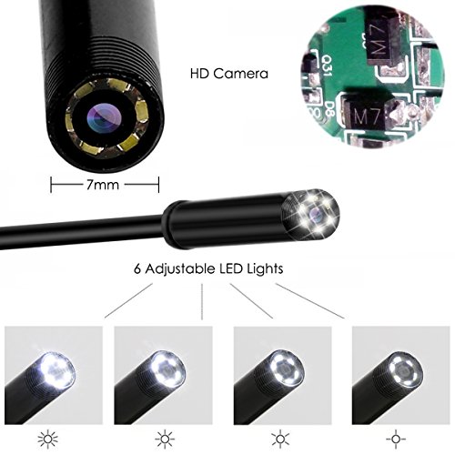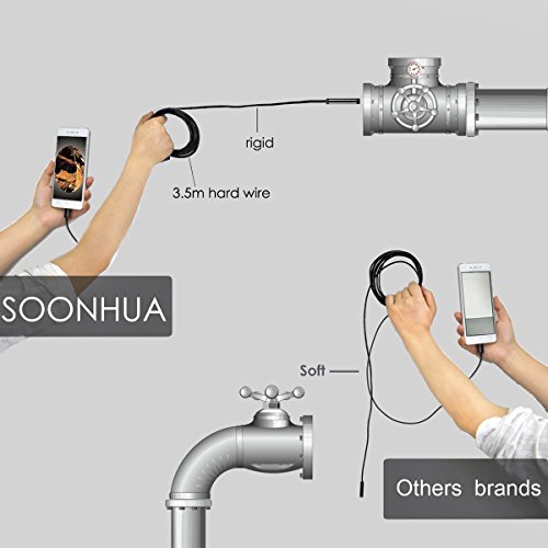 USB Endoscope Borescope Inspection Camera for Android Phone with OTG/Type-c Device/PC, SOONHUA 2.0MP High Definition Borescope Waterproof with 6 Adjustable LEDs 7.0mm Lens Diameter 3.5M Rigid Cable