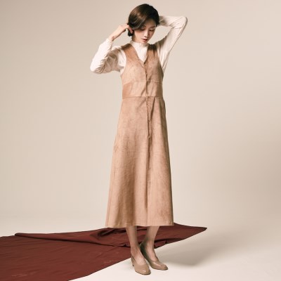 스웨이드 원단으로 제작된 롱 기장의 원피스에요
