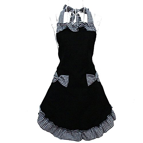 Cute Fashion Lady's Aprons for Girls Women Waitress, Home Kitchen Cooking Restaurant Chef Bib Apron Dress Christmas Gift HSW023 (black base- white and grey lace)