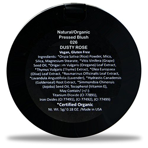 -. Feature : Made with certified ORGANIC and ALL NATURAL ingredients - ZERO artificial colors, preservatives or fragrances / Made in the USA, 100% VEGAN, cruelty-free and GLUTEN-FREE makeup / Ultra wearable shades perfect for a TOUCH of color or for a dramatic color pop / LIGHTWEIGHT creamy powder easily blends and builds to achieve desired level of color / BEAUTIFUL rosey radiance is finally available in an ORGANIC, 100% natural and Vegan formula