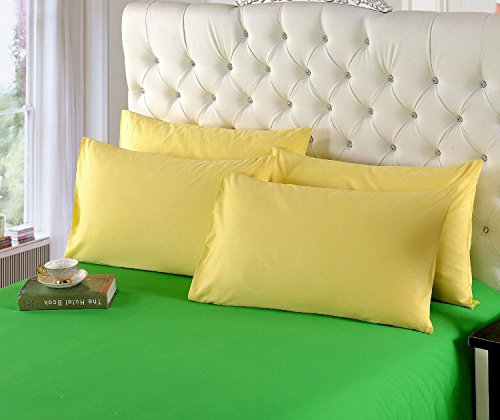 Tache 2 Piece 100% Cotton Solid Bright Light Banana Yellow Fitted Bed Sheet Set, Twin