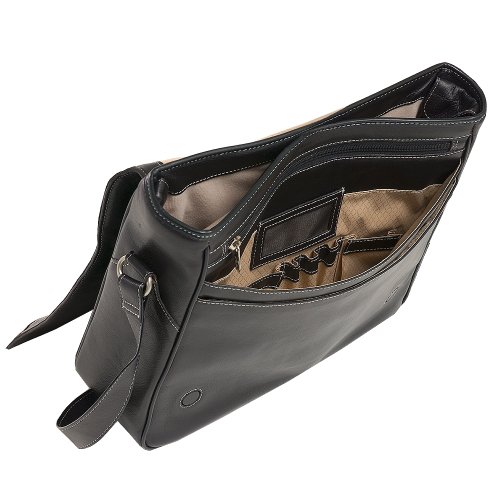 Studio : SIAMOD Publisher : SIAMOD Binding : Apparel Product Description Siamod San Francesco Leather Messenger Bag protects your precious laptop from the perils of the concrete jungle! NOW SAVINGS - PRICED! Clean contemporary style meets classic fashion staple cashmere leather to bring you this sophisticated Messenger Bag. Slide this sleek and compact Euro-inspired Bag over your shoulder and swim through the hectic city streets with ease and style. A padded laptop sleeve plus plenty of pockets for files, business cards, and small electronics will keep you smartly organized and at your best as you move from one end of your workday to the other. Style for days: Laptop pocket comfortably holds and protects PC laptops up to 15 2/5" screen size, Mac laptops up to 14"; Adjustable leather shoulder straps have a drop length of 20"; Interior front pocket and front zipper pockets hold files and small accessories; Interior front section features an organizer for pens, business cards, and small devices; Back zipper pocket holds files, newspapers, or magazines; Bag measures 15 1/2 x 4 1/2 x 13" h. 877 cubic inch capacity. Weighs 3 1/2 lbs. State Color. The perfect Bag for the active young man about town. Order yours today! Siamod San Francesco Leather Messenger Bag 0