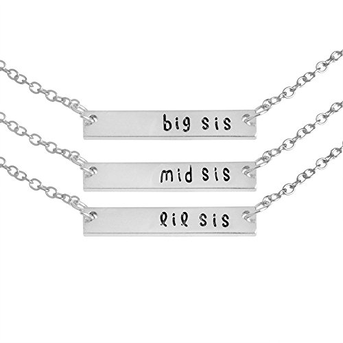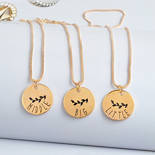 -. Binding : Jewelry -. Brand : Yeegor -. Color : A -. Department : girls -. Feature : Material:zinc alloy / Family Love Forever-3pcs Love heart pendant Sister Necklace Set / Pendant fits on the outside with "Big Sister" / Pendant fits in the center with "Middle Sister" / Pendant fits in the center with "Lil Sister" -. Label : Yeegor -. Manufacturer : Yeegor -. ProductGroup : Jewelry -. ProductTypeName : FASHIONNECKLACEBRACELETANKLET -. Publisher : Yeegor -. Studio : Yeegor -. Title : 3Pcs/Set Girls Jewelry Big Sis Middle Sis Little Sis Heart Pendant Best Friend BFF Necklace