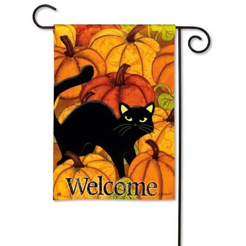 -. Title : Black Cat in Pumpkin Patch Halloween Garden Flag