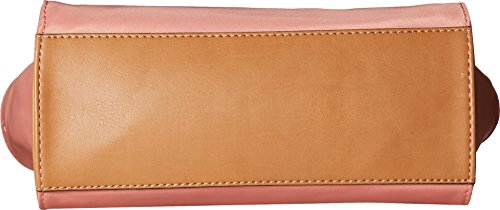 Top zip closure. Dual flat carry handles with chain detail. Removable and adjustable crossbody strap. Exterior features brand detail at front, zip pocket at back, and polished hardware. Flat base. Lined interior flaunts back wall zip pocket and additional slip pocket. Imported.