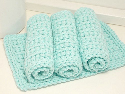 -. Title : Robins Egg Blue 4 Inch x 7 Inch Rectangular Crochet Cotton Dishcloths (Set of 4) Aqua