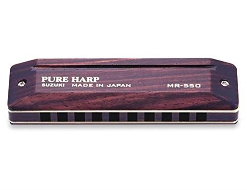 Studio : Suzuki Publisher : Suzuki Binding : Electronics Product Description Using the most seasoned tonewoods and unique construction technique, the MR-550 Pure Harp is the result of Suzuki"s research and development of unique professional grade harmonicas. Rosewood has been sought after by top musicians from all over the globe, from classical guitar players to top violinists. This wood allows unique tonal qualities and when used in harmonica construction, gives a warmer tone. Using Rosewood can produce a high velocity of sound and a broad range of mid and low overtones. These "lows" help to create a complex bottom end which imparts a richness to the overall tone of the harmonica.The redesigned reeds, which are the heart of this Suzuki harmonica, have been produced with the advanced player in mind. However, this reed design makes it easier to play the harp chromatically, right out of the box! The Suzuki Reed plates allow ease of play, especially with overblow and overdraw techniques.The Suzuki MR-550 is an all-hardwood harmonica; even the covers are rosewood! It gives the harp a rich, dark and bluesy tone that will have your audience begging for more. The richness of this harmonica is unmatched and if you are looking for a traditional sound, here it is! 0
