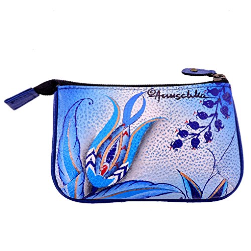 -. Feature : Measures 5" by 3.25" / Top Zipped Entry To Main Compartment / Coin Pouch / Genuine Anuschka w/All Tags Present / Hand Painted Genuine Leather