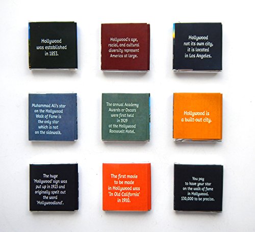 -. Feature : Pieces of chocolate made from high-quality raw / Creative carton box - MAGNET with sliding bottom / Each of the 9 wrappers contains one of the historical facts about Hollywood / "You pay to have your star on the walk of fame in Hollywood. $30,000 to be precise." / "Hollywood not its own city, it is located in Los Angeles.", "Hollywood's age, racial, and cultural diversity represent America at large.", "Hollywood was established in 1853.", "Hollywood is a built-out city.""The huge 'Hollywood' sign was put up in 1923 and originally spelt out the word 'Hollywoodland'.", "The first movie to be made in Hollywood was 'In Old California' in 1910.", "The annual Academy Awards or Oscars were first held in 1929 at the Hollywood Roosevelt Hotel."