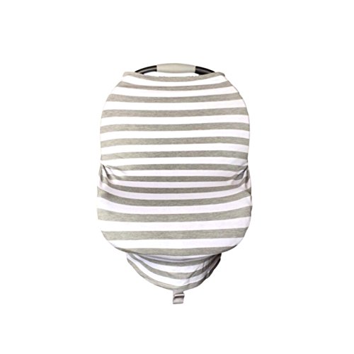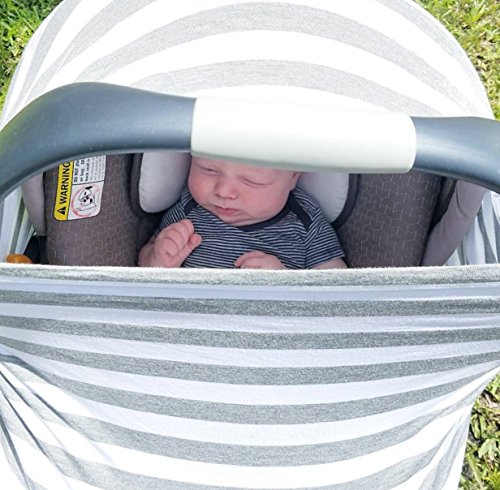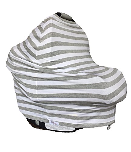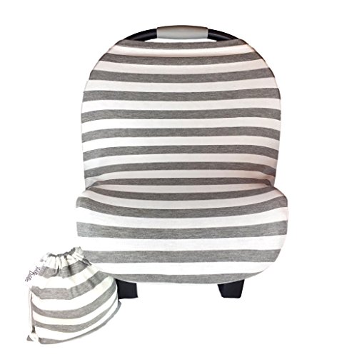 Baby Car Seat Cover Multi-Use Stretchy 5-in-1 by Fiddle Diddles (Grey White Stripe)