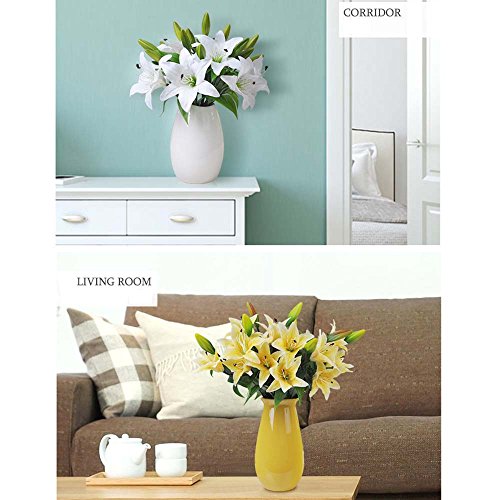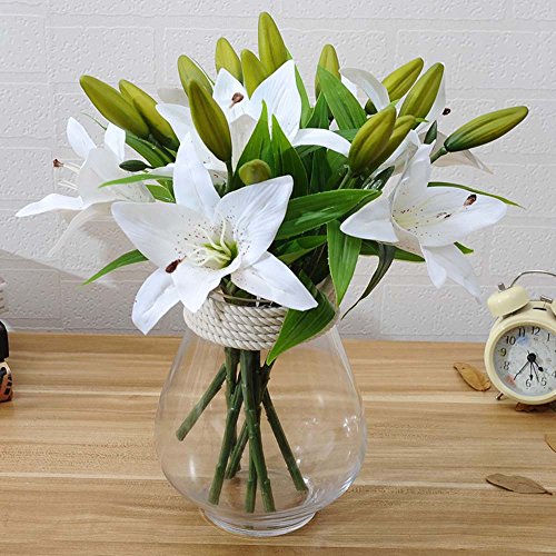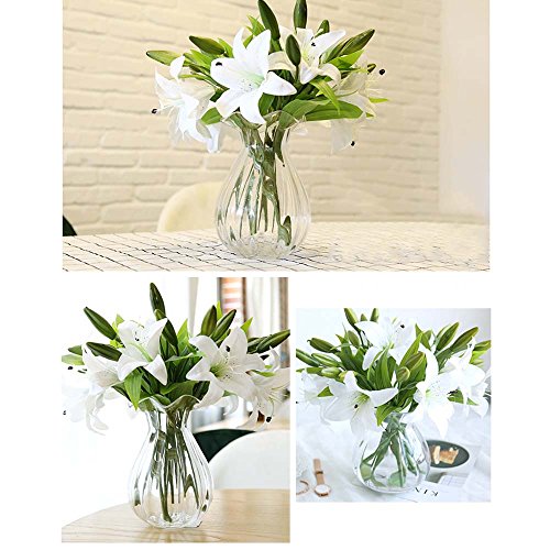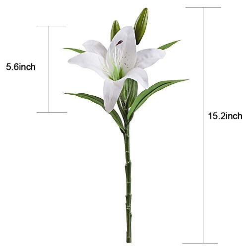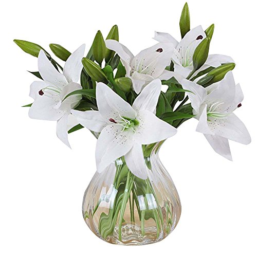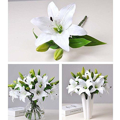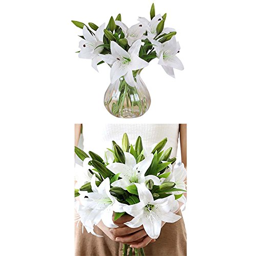 Sisjuly 5 Pcs Artificial Lillies Flowers with 3 Buds Home Decoration Craft Flower White