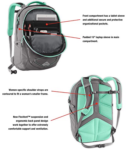 -. Brand : The North Face -. Color : Grey -. Department : womens -. EAN : 0689914741850 -. Feature : Our best-selling 25-liter women's pack gets a reboot with improved organization and an upgraded suspension system / Women-specific shoulder straps are contoured to fit a woman's smaller frame / Padded, fleece-lined 15" laptop sleeve in main compartment protects laptop from bumps and falls / Secondary compartment has internal organization with a fleece-lined media pocket, secure zippered pocket and elastic webbing for cord management / Reflective bike-light loop, reflective water bottle tabs and reflective shoulder strap webbing create 360 degrees of reflectivity -. Label : The North Face -. Manufacturer : The North Face -. MPN : CHK3-EXE -. PackageQuantity : 1 -. PartNumber : CHK3-EXE -. ProductGroup : Sports -. ProductTypeName : OUTDOOR_RECREATION_PRODUCT -. Publisher : The North Face -. Size : One Size -. Studio : The North Face -. Title : THE NORTH FACE WOMEN'S BOREALIS BACKPACK VAPOROUS GREY/ KOKOMG -. UPC : 689914741850