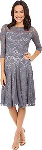 3/4 sleeve all over lace drop waist longer length fit and flare with a godet hem