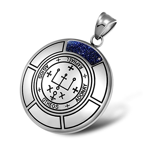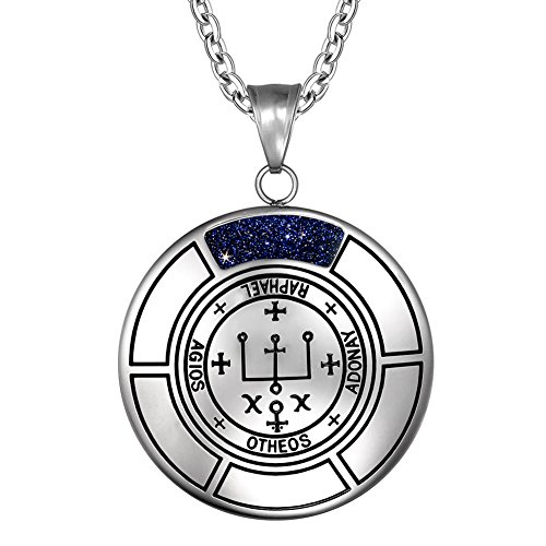-. Binding : Jewelry -. Brand : BestAmulets -. Color : Blue -. Department : womens -. Feature : Best Amulets® Collection. Magical Medallion Amulet holding Uniquely Shaped Crystal at the Top. / The Medallion is Slightly Curved upward and makes it Very Special and One of the Kind. / Pendant Charm Size: 35mm (1 1/4 inch). Magical Symbols are Accurately Engraved over Stainless Steel and makes is Spectacular Piece if Inspirational Jewelry. / Ready to Wear with Beautiful Stainless Steel Link Style 18 Inch Chain Necklace. / Comes with Gift Kind Packaging. -. Label : BestAmulets -. Manufacturer : BestAmulets -. Model : ANGELSIGILRRS7 -. MPN : ANGELSIGILRRS7 -. PartNumber : ANGELSIGILRRS7 -. ProductGroup : Jewelry -. ProductTypeName : FASHIONNECKLACEBRACELETANKLET -. Publisher : BestAmulets -. Studio : BestAmulets -. Title : Sigil of Archangel Raphael Magic Medallion Angel Amulet Blue Goldstone Pendant 18 inch Necklace
