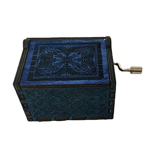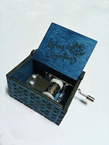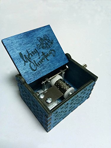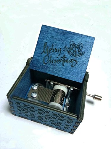 Engraved Wooden Hand Crank Music Box Xmas Gifts for Merry Christmas (Merry Christmas Blue)