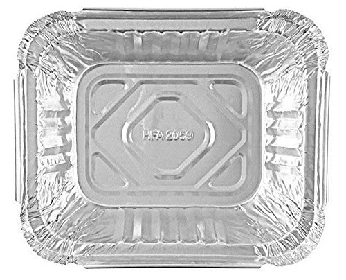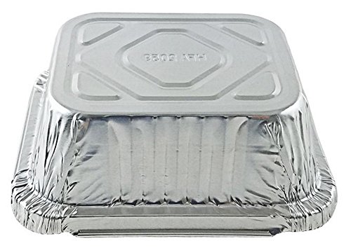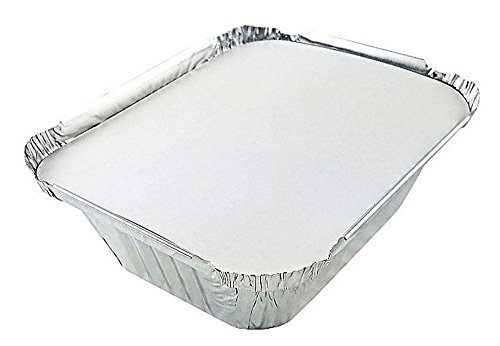 Studio : HFA Publisher : HFA Product Description Premium quality 1 lb. oblong aluminum foil take-out pans with matching foil laminated board lids (one side of the lid is white cardboard, the other is silver foil laminated). Pan Dimensions: 5-9/16" L x 4-9/16" W x 1-5/8" D. Capacity: 15.0 Fl. oz. sturdy pans. Ideal for small take-out meals, side dishes, pastries, sweets, and more. OU Kosher certified, Proudly made in the USA. 0