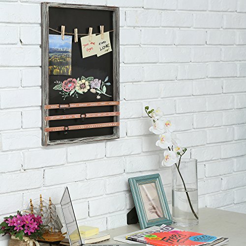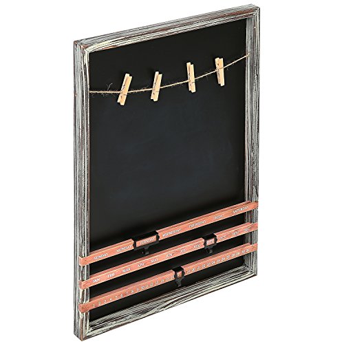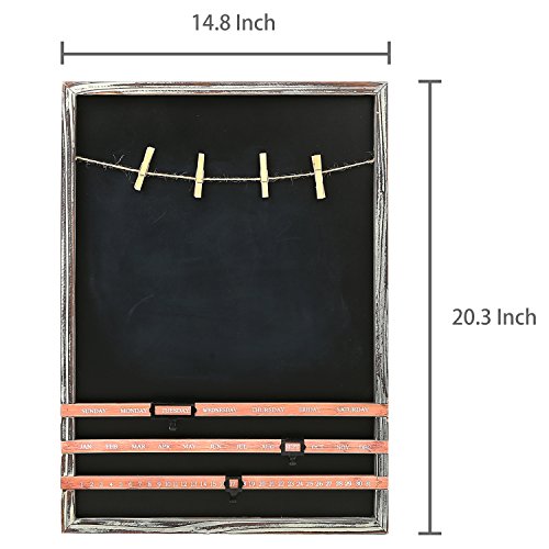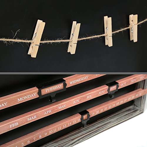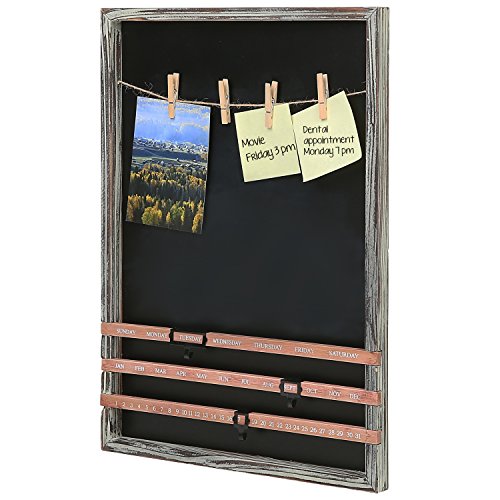 Wall Mounted Torched Wood Chalkboard with Sliding Calendar, Twine & Photo Clips - 20 X 14